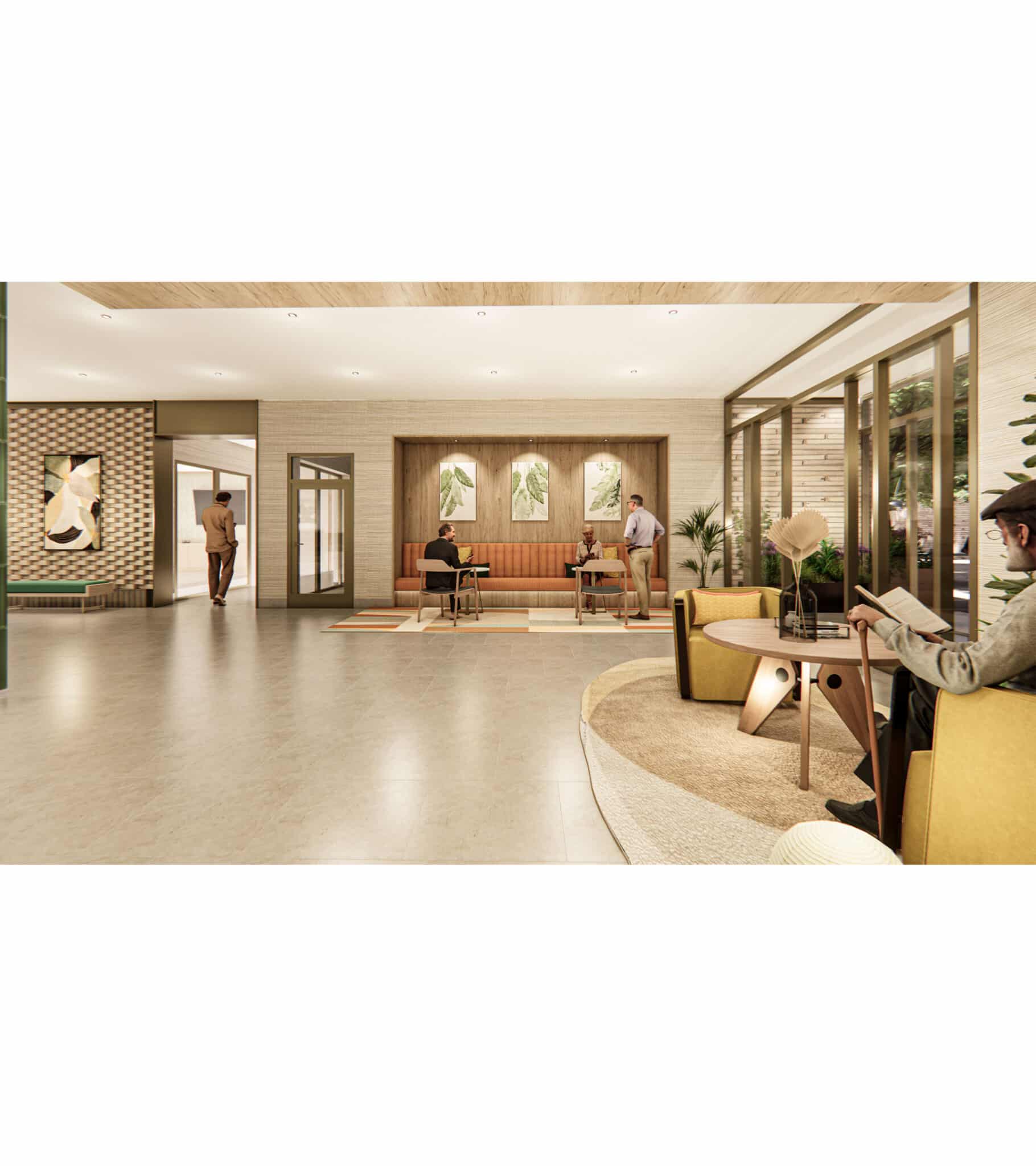 S9 Architecture designed the nine-story building to serve as a new neighborhood hub that continues the site’s legacy of community connection. The brick façade is arranged in dynamic patterns to create visual interest; the building includes a series of setbacks with planted terraces. Resident amenities include a communal lounge, fitness room, social services office, and courtyard garden. The building meets Enterprise Green Communities and EnergyStar sustainability standards.