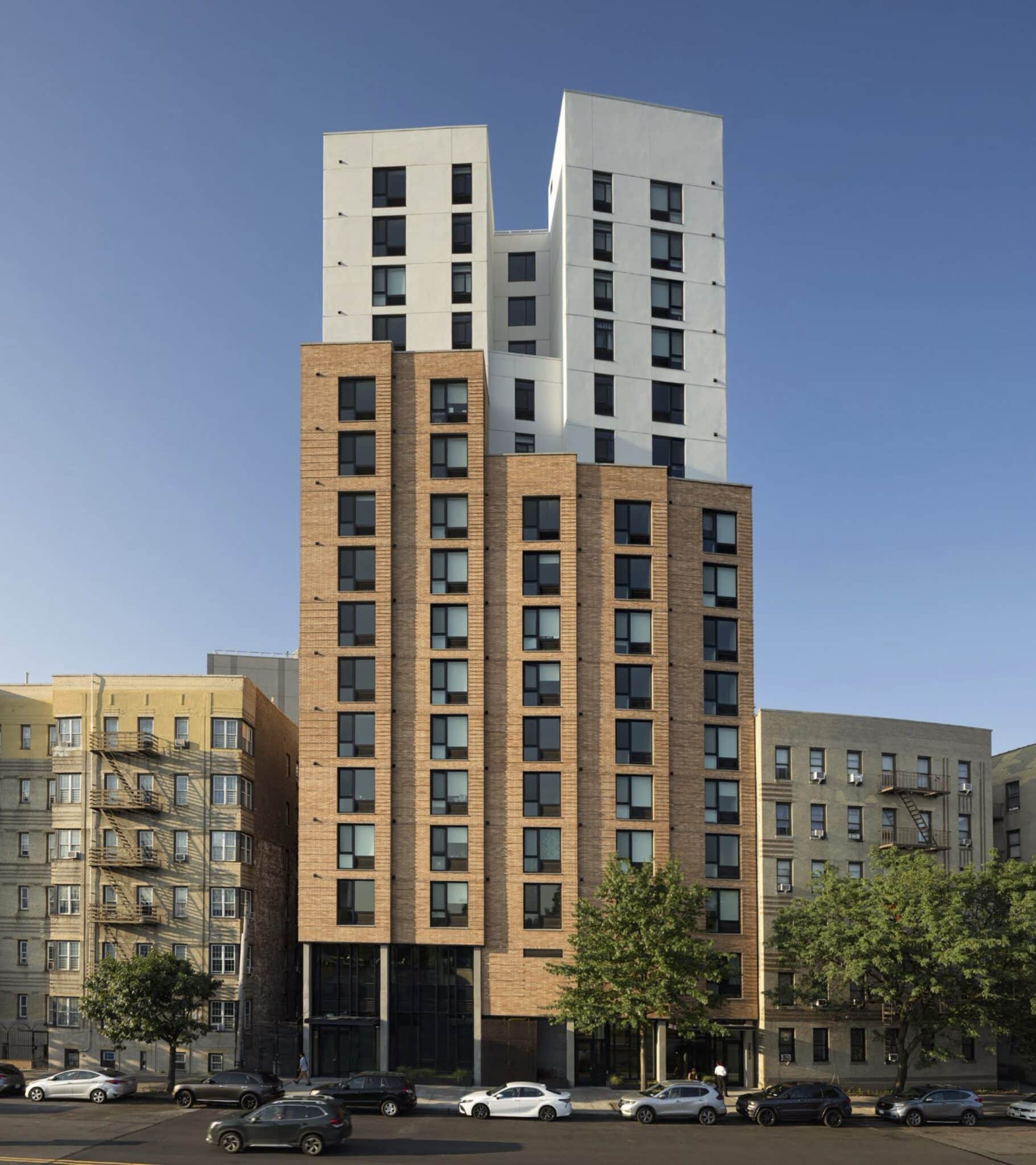 Bedford Green House is Project Renewal’s two-phase development occupying a through-way lot bound by Jerome and Creston Avenues. The project was envisioned as a sustainable, socially integrated, intergenerational, mixed-population, and mixed-income community bolstered by biophilia-inspired amenities that promote socialization, safety, and healthy living practices.