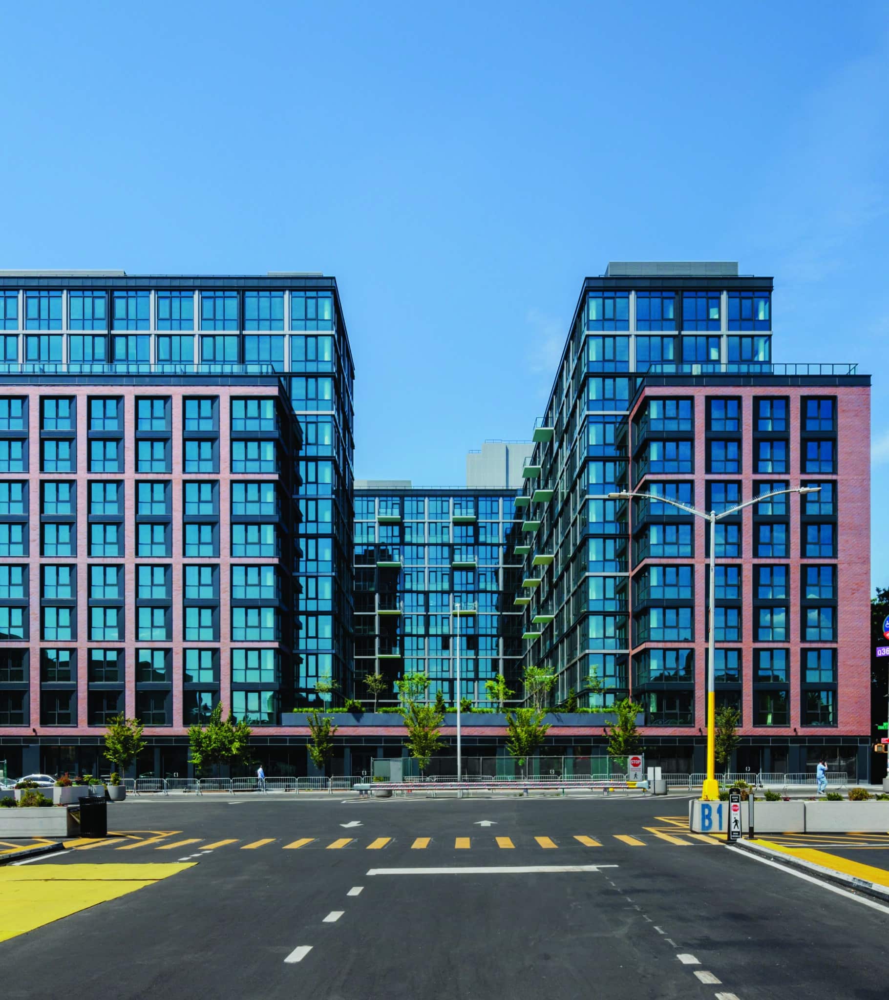 Ruby Square is a transformative 714,000 sf mixed-use development in Jamaica, Queens, located near the major transit hub at Jamaica Station.The project delivers 614 rental units in studio to two-bedroom layouts, including 185 affordable units, along with more than 50,000 sf of resident amenities, 25,000 sf of retail space, 5,000 sf of community space, and 284 below-grade parking spaces. Addressing critical workforce housing needs, Ruby Square strengthens economic vitality in a dynamic and evolving neighborhood. The 185 units of affordable housing are set aside for residents earning 80 and 130 percent of the area median income (AMI). A number of homes have their own balconies that line the outer and inner facades of the superstructure.