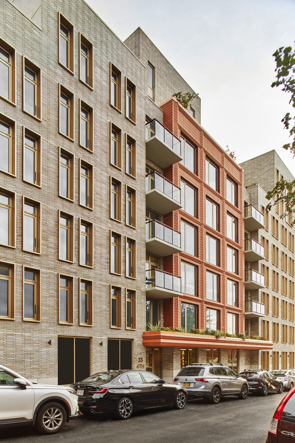 33 4th Street is an eight-story multifamily rental building in the newly rezoned Gowanus, comprising 82 thoughtfully crafted units. The design draws inspiration from Brooklyn’s industrial legacy, referencing iconic brick factories and warehouses through materiality and form. A faceted terracotta rainscreen system, brick veneer, green canopy, and articulated shadow boxes create a façade of depth, rhythm, and texture, while the terracotta imbues the building with artistry and timeless character. Clean lines, precise detailing, and robust materials balance modern refinement with contextual resonance. Landscaped rear yard amenities and multiple roof terraces extend living spaces outdoors, fostering connection and comfort within the urban fabric. The project exemplifies a considered, contemporary response to place, merging functional excellence with a distinctive architectural presence that elevates the evolving Gowanus streetscape.