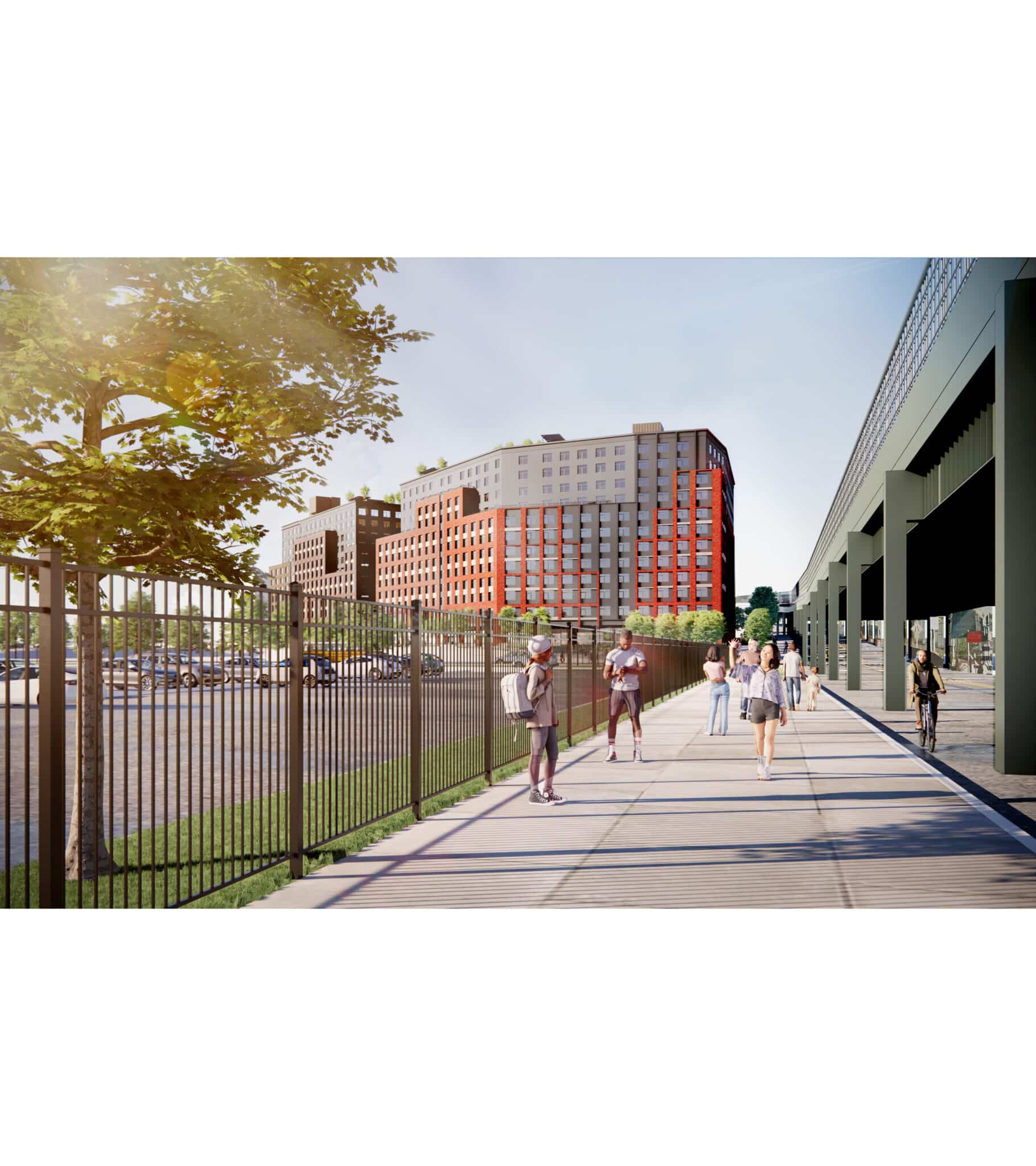 Beyond residential, Willets Point centers retail, public space, and community uses needed to make a neighborhood thrive. New streets and infrastructure, designed with pedestrian-friendly principles, will ensure the area is walkable, accessible, and equitable. Future phases will add more benefits, including a school, parks, utilities, MLS stadium, and more housing. Developed with Community Boards, NYCEDC, NYC Football Club and Queens Development Group, Willets Point is a groundbreaking project that will have a monumental impact on livability in the city.